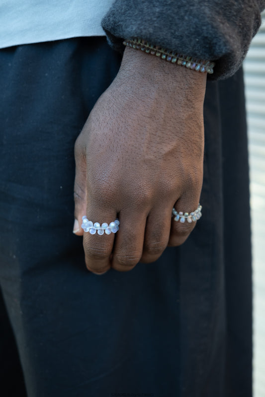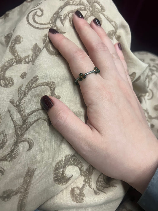 Muted Spring Doll Beared Iris Japanese Glass Bead Ring